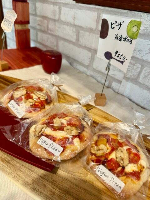 新しい味わいのヴィーガンピザが登場しました。お米ぱんの生地でグルテンフリーでありながら、風味豊かで満足感も抜群です。厳選された国産の食材を使用し、薄いクラストに新鮮な野菜やマッシュルーム、チーズの代わりに、豆乳ベースの自家製チーズを使用しています。濃厚でコクのある味わいを楽しめます。